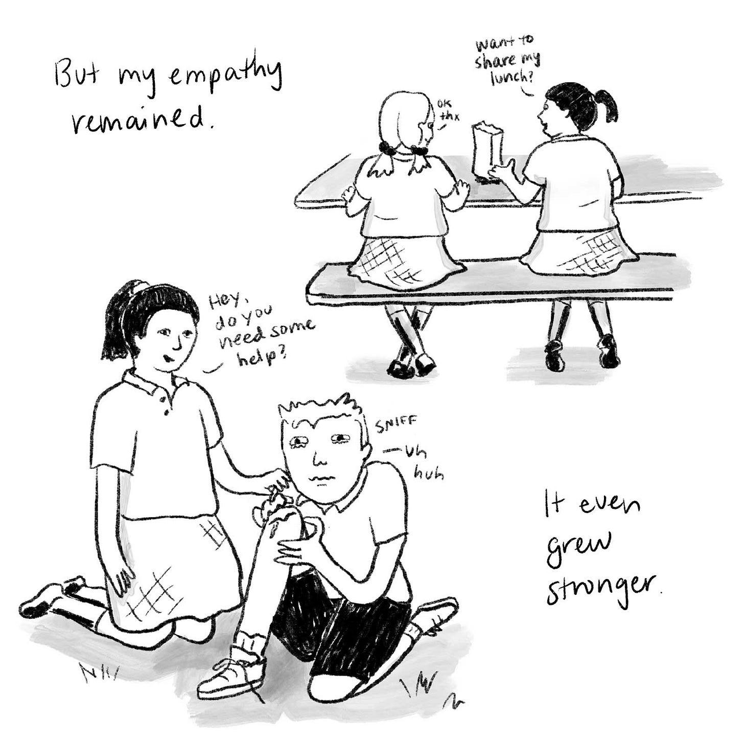 A great graphic story beautifully drawn. I love your empathy globe. If $10 1 pint ice cream tub works as well you believe it should be eaten every day. I think coffee and vanilla ice creams mixed do it for me. . .🐰